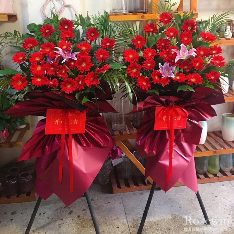 經(jīng)典開業(yè)花籃,紅色歐雅紙包裝,紅色緞帶束扎