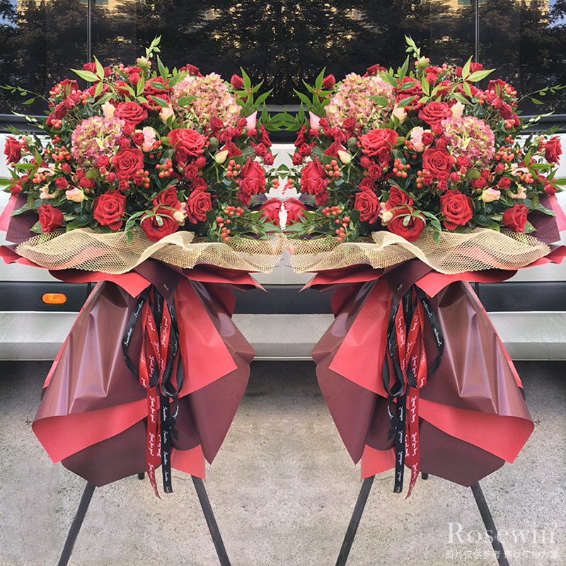敬賀開張-紅玫瑰+繡球款開業(yè)花籃
