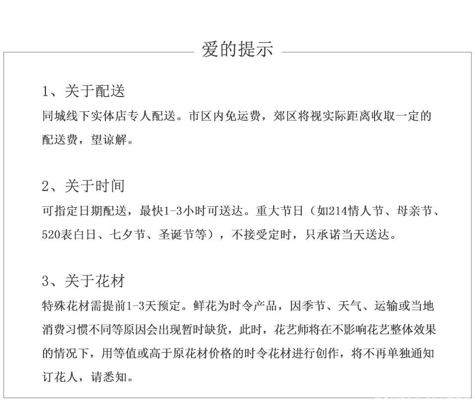 特別說明:本款為特別款進(jìn)口鮮花,請至少提前5-7天預(yù)訂,或訂購前咨詢客服。