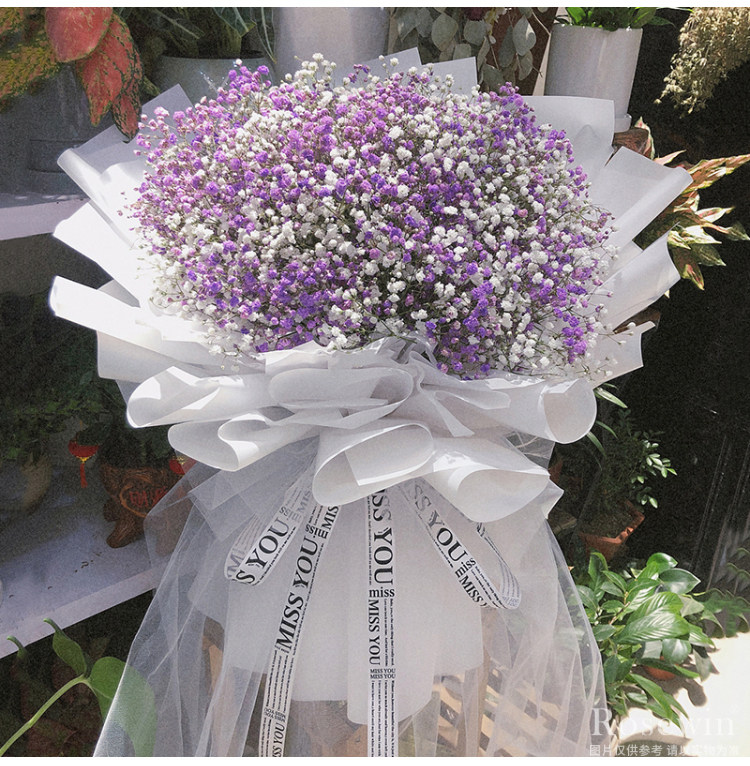 情義無(wú)價(jià)-紫色+白色滿天星混搭花束