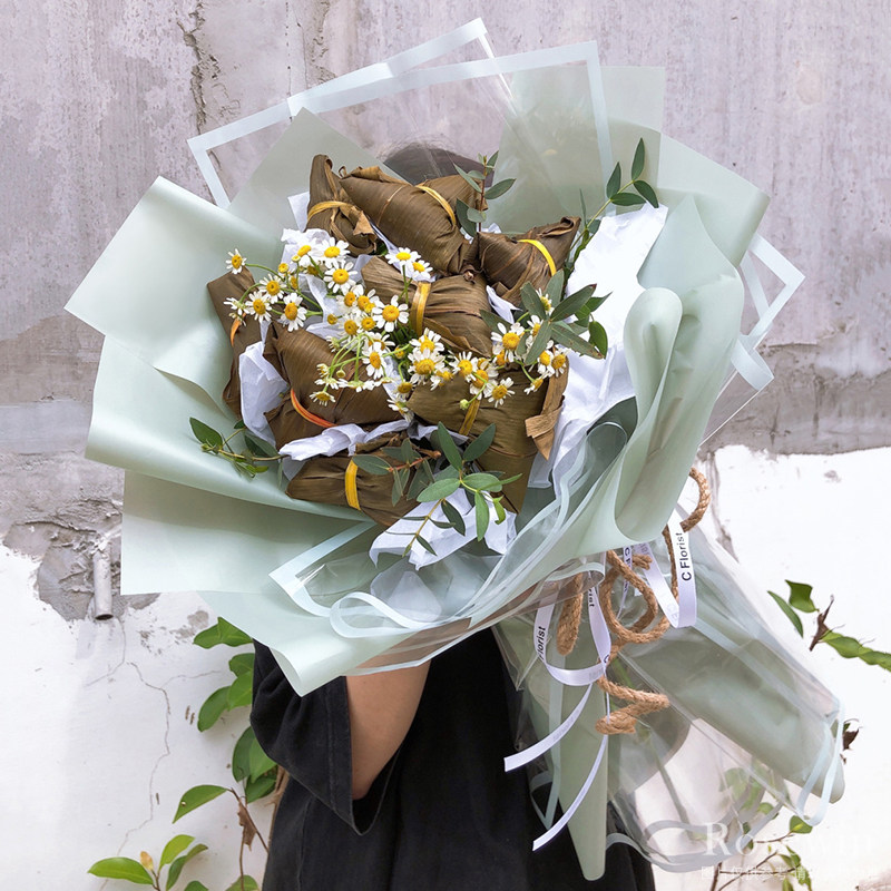 8個(gè)粽子,適量洋甘菊、細(xì)葉尤加利葉裝飾