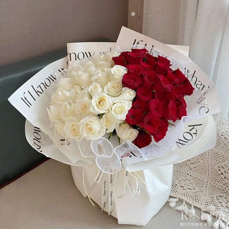 52朵混色玫瑰(白玫瑰+紅玫瑰)
