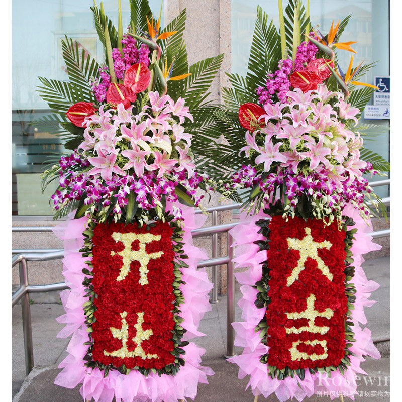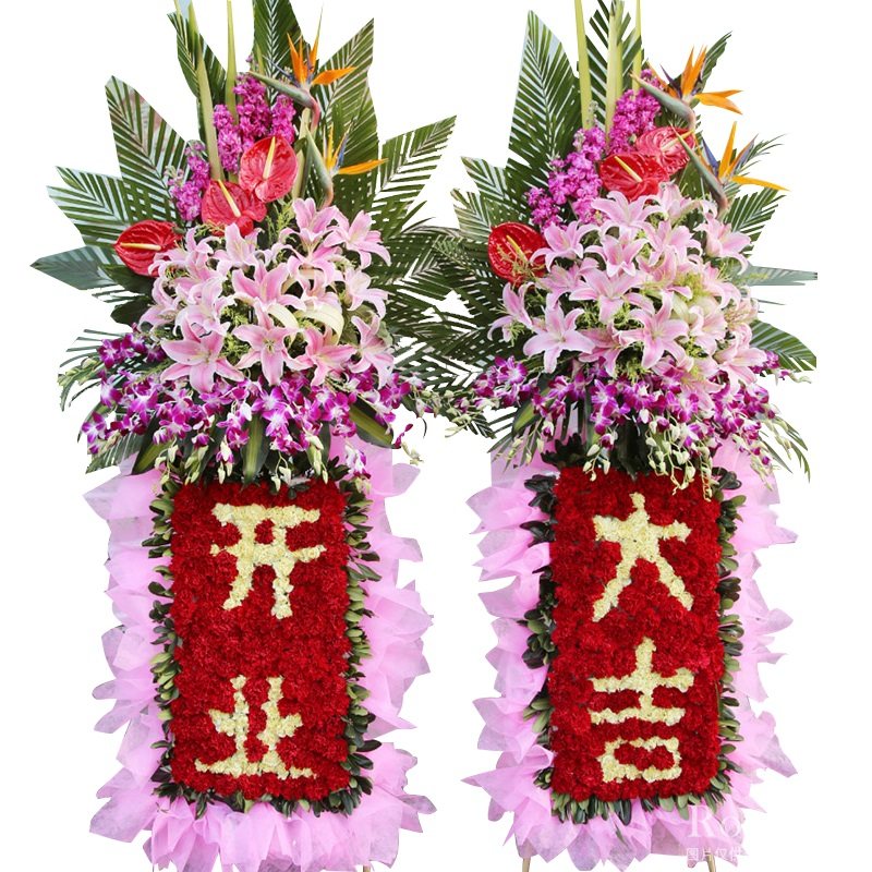 經(jīng)典開業(yè)花籃,粉色棉紙裝飾。