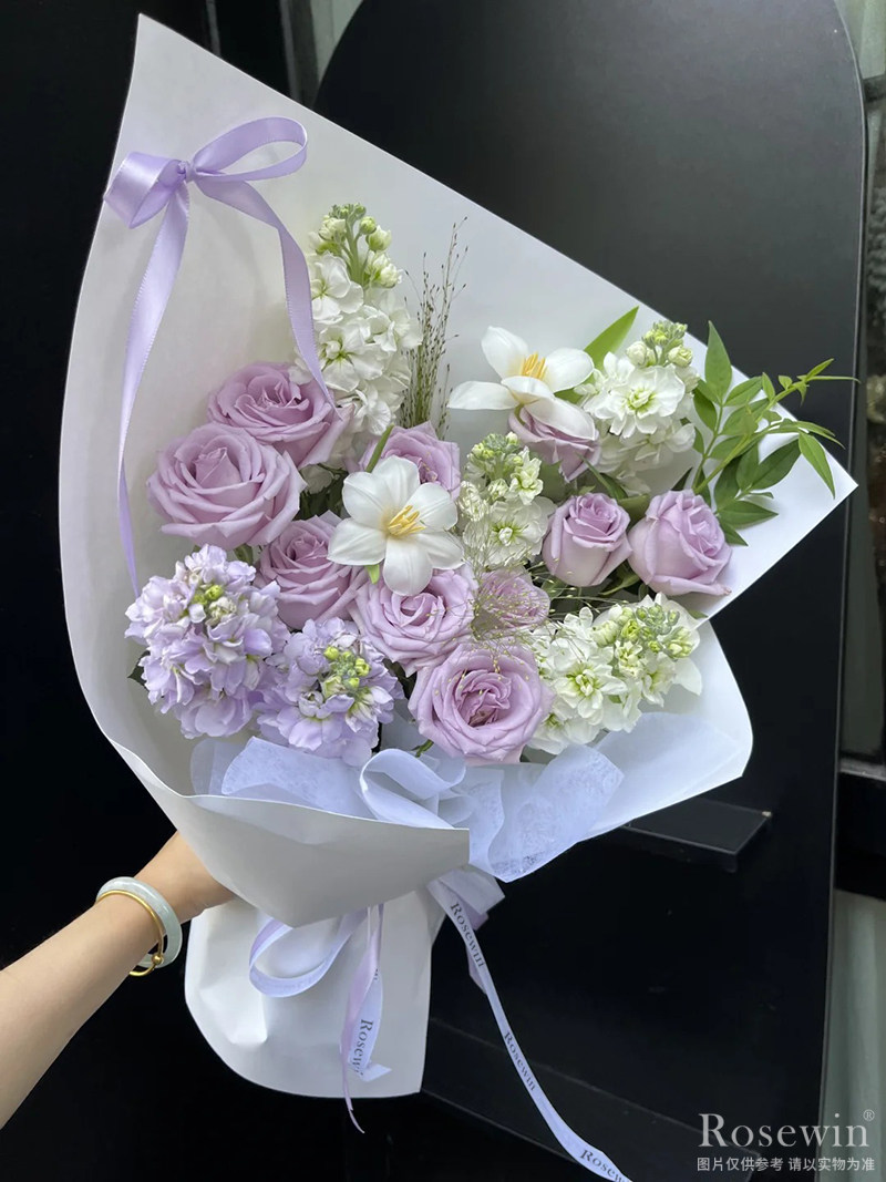 由于各地的花藝師不同,鮮花包扎可能在形式和搭配上與圖片不完全一致,但保證主花材的新鮮程度、數(shù)量、顏色與說明一致,謝謝您的理解。
