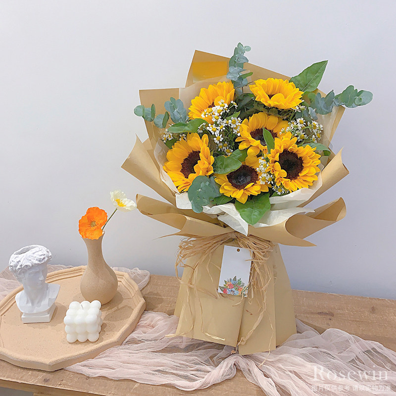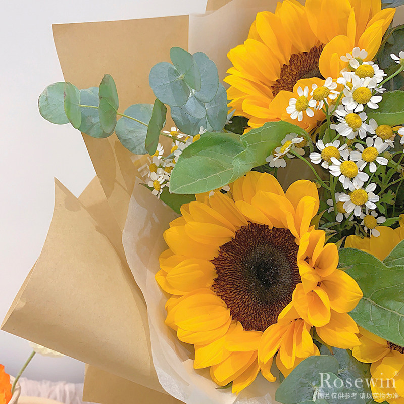 6朵向日葵,適量洋甘菊、尤加利葉裝飾