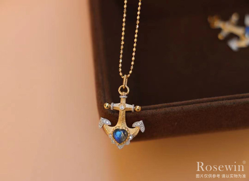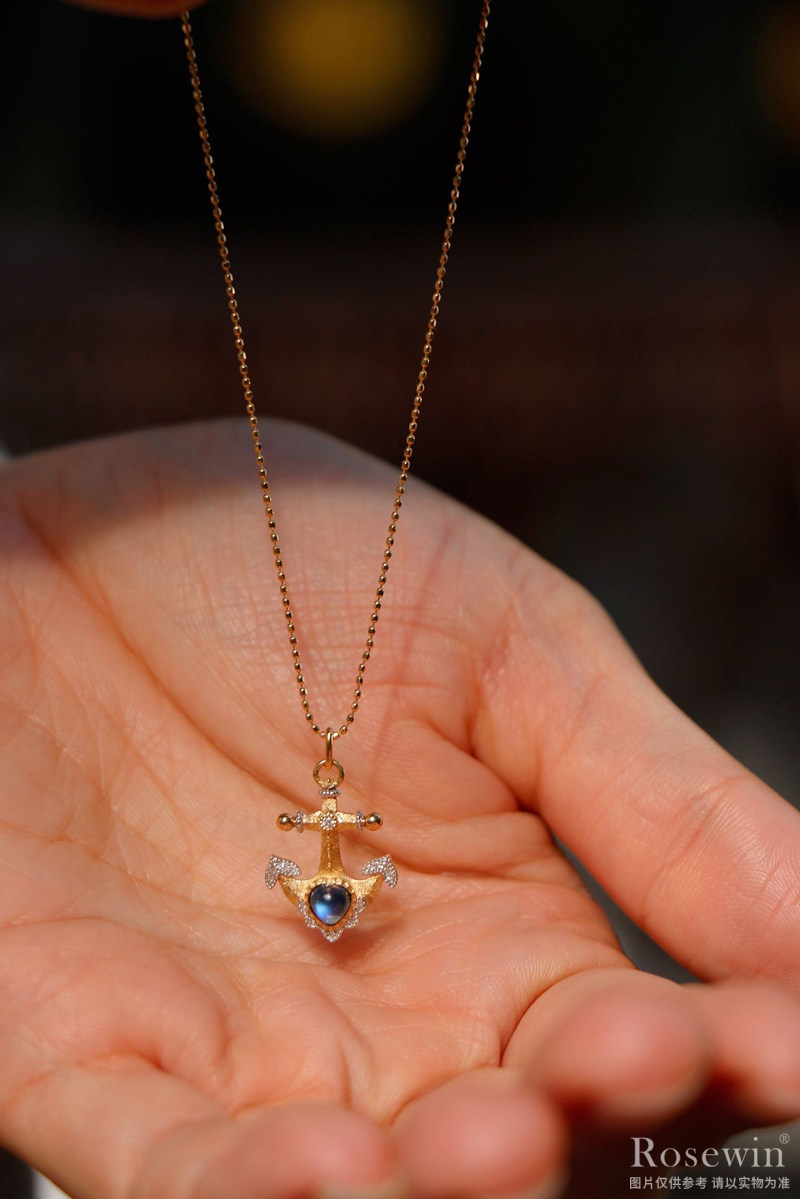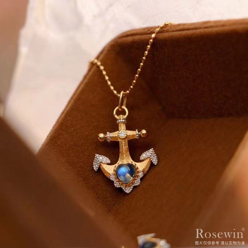復(fù)古質(zhì)感18K金鉆石月光石項(xiàng)鏈