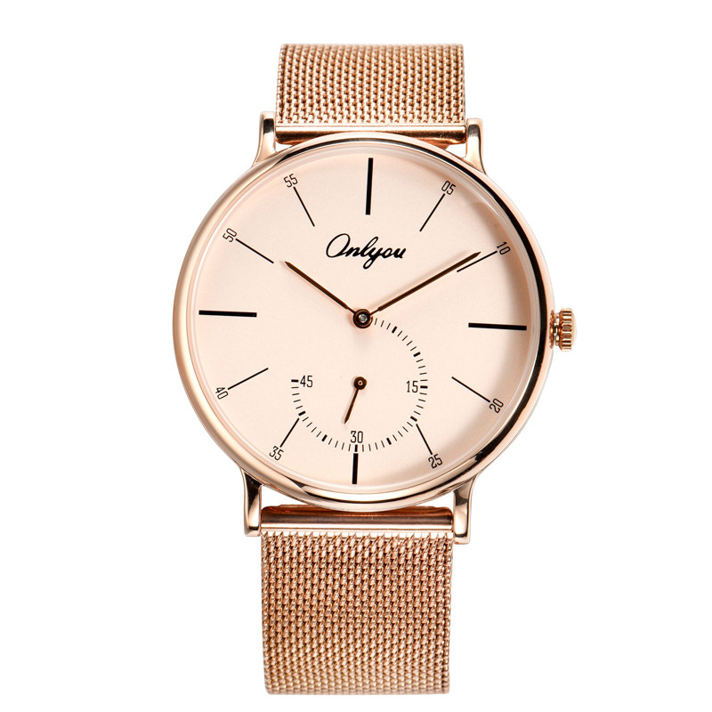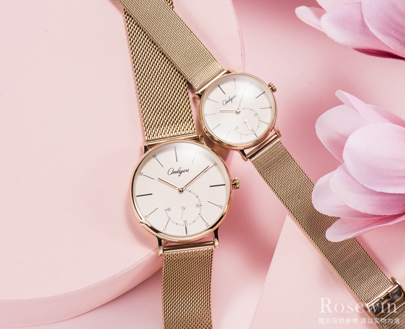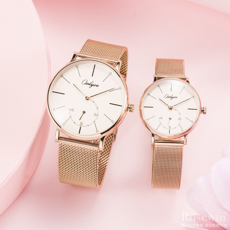 進口機芯;高強度玻璃鏡面; 合金表殼; 鋼帶表帶;表殼寬度:男款40mm左右、女款30mm左右; 表帶寬度:男款20mm左右、女款14mm左右