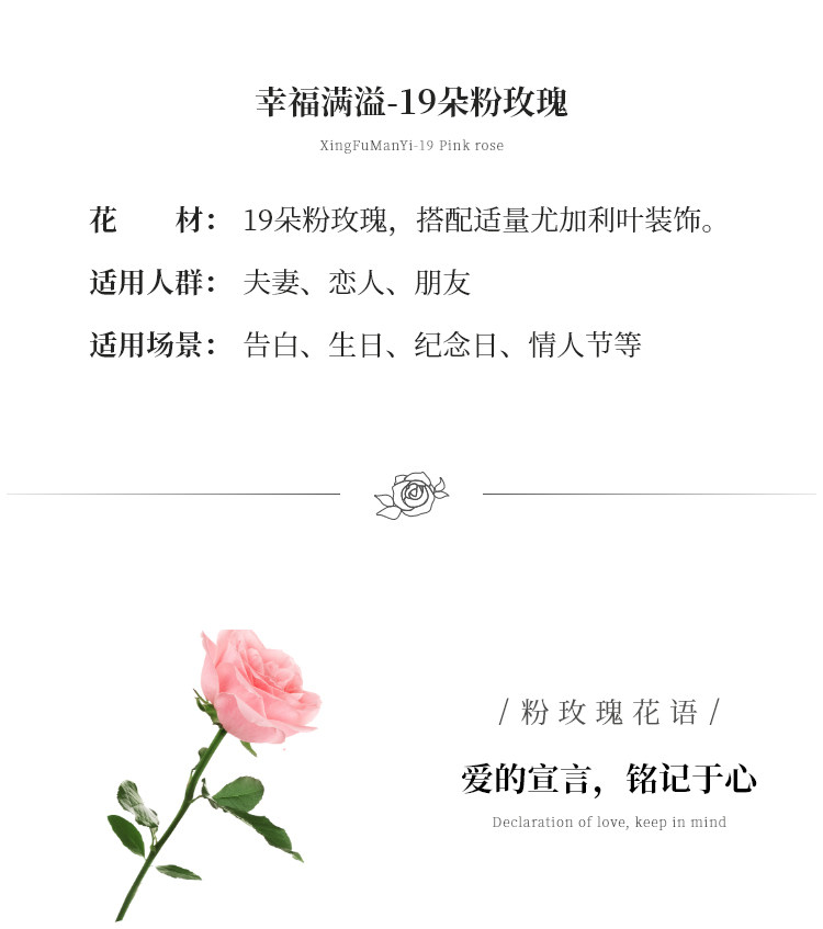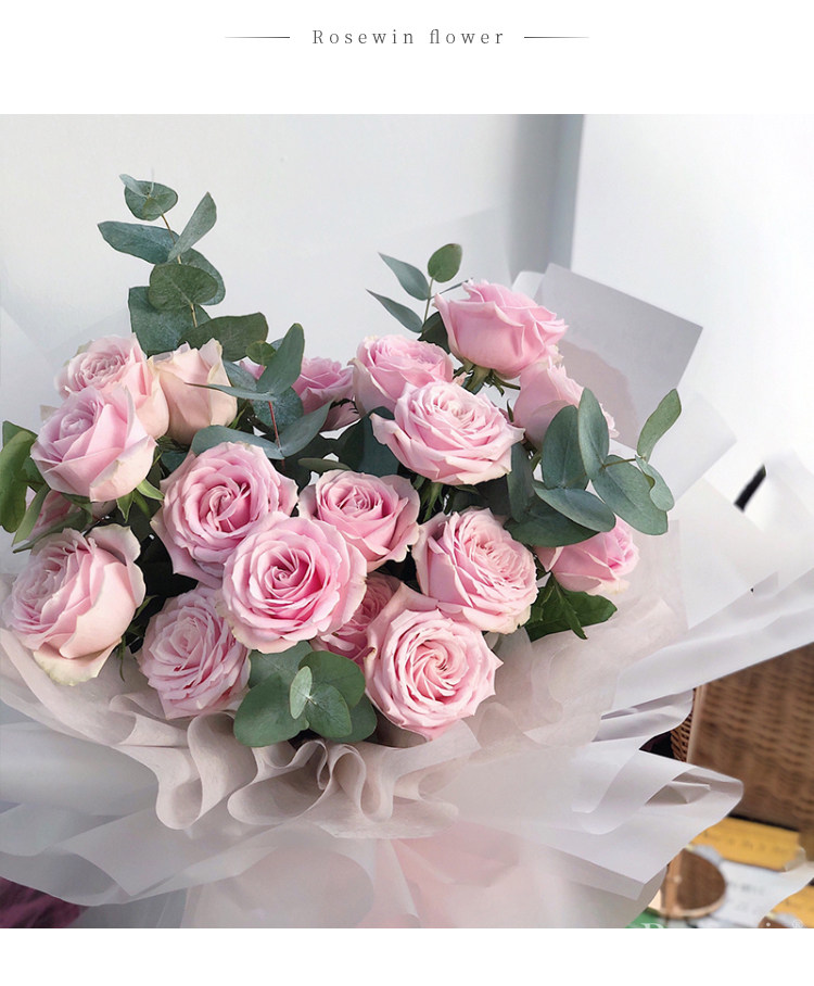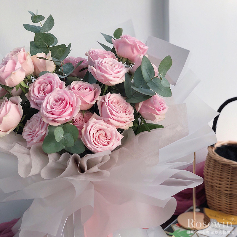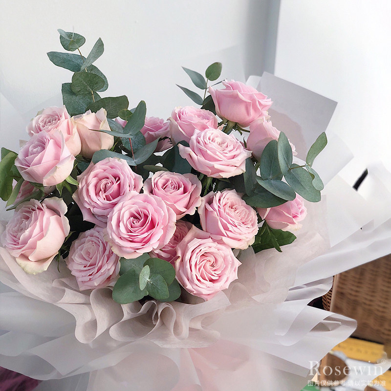 19朵粉玫瑰,搭配適量尤加利葉裝飾。