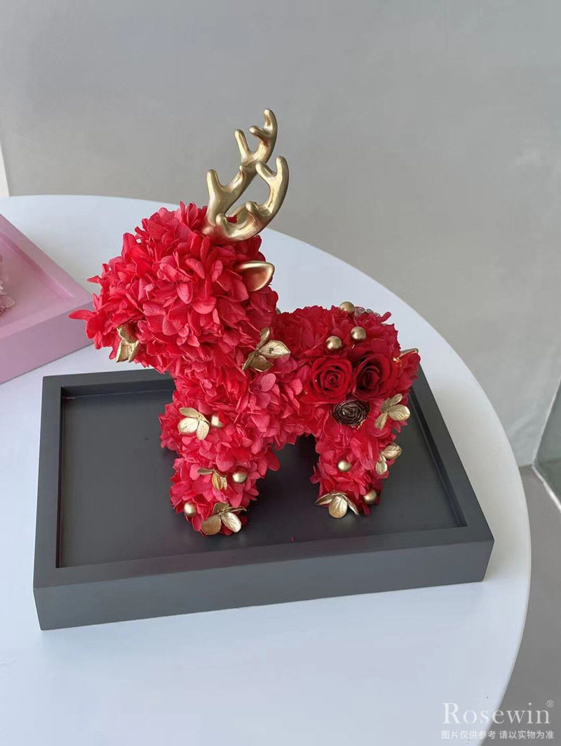 一鹿相伴主題永生花禮盒裝(紅色款)