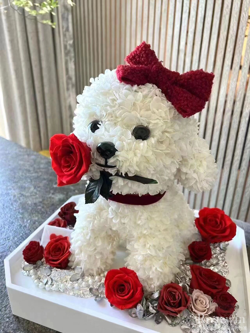 玫瑰泰迪狗(紅玫瑰+白色狗)