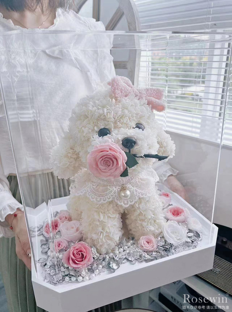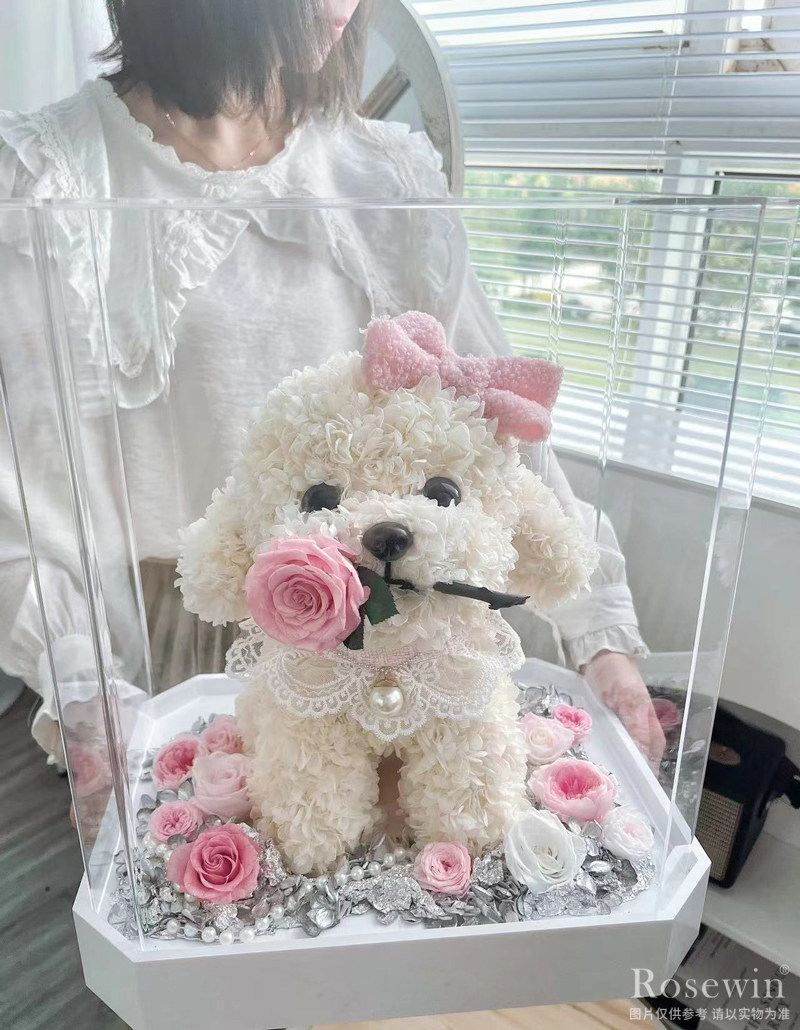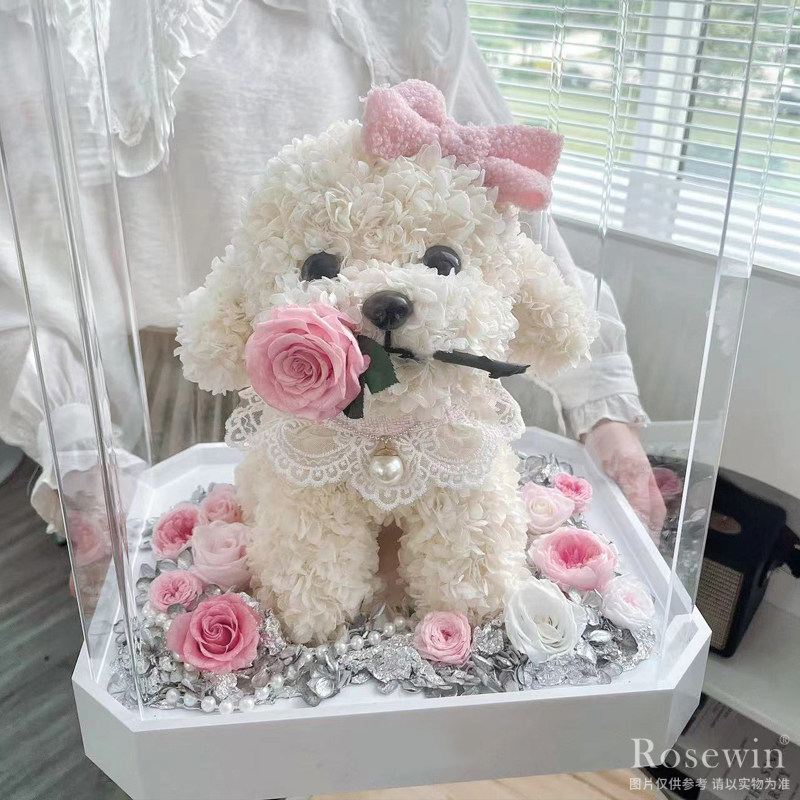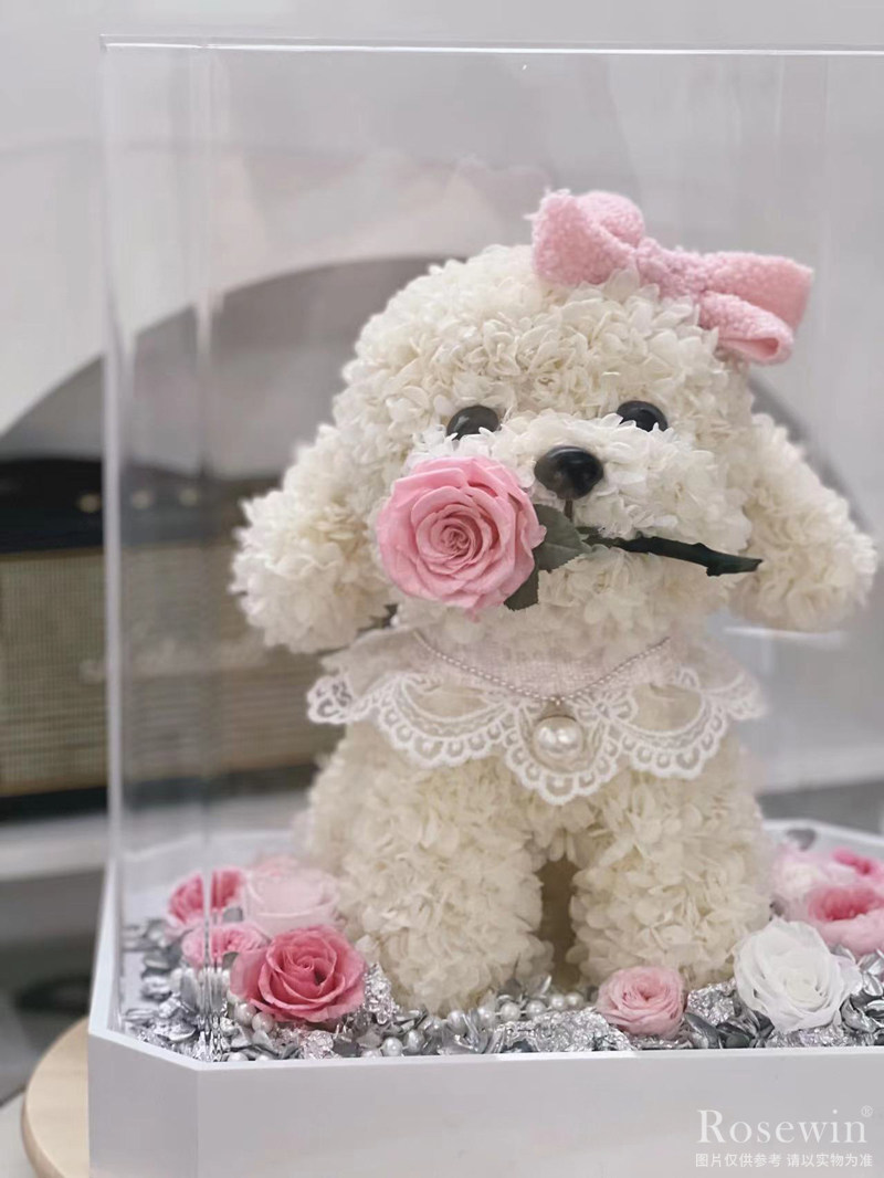 玫瑰泰迪狗(粉玫瑰+白色狗)