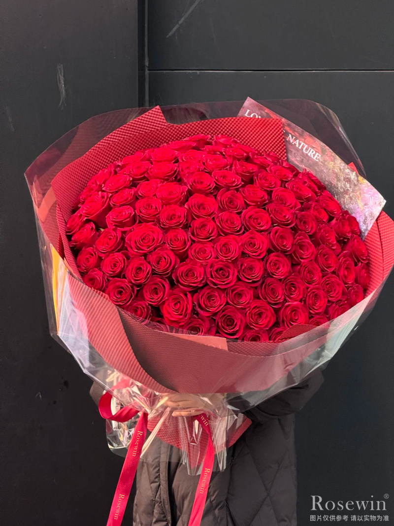 由于各地的花藝師不同,鮮花包扎可能在形式和搭配上與圖片不完全一致,但保證主花材的新鮮程度、數量、顏色與說明一致,謝謝您的理解。