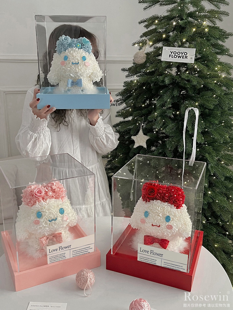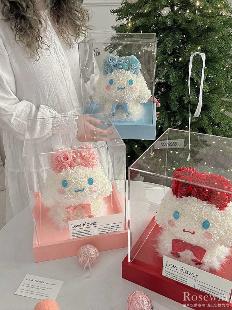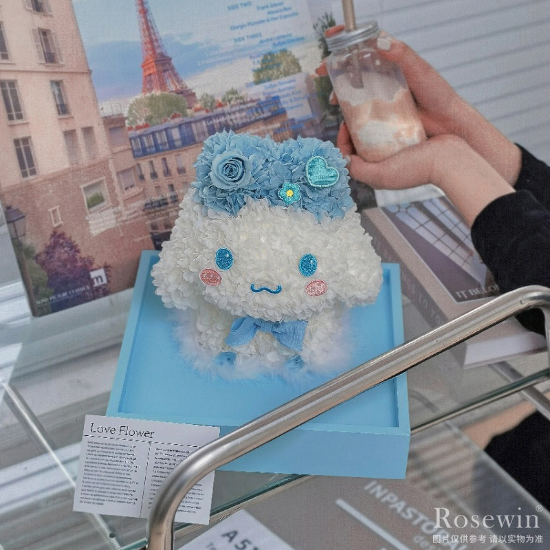 玫瑰玉桂狗◆永生花禮盒裝(藍色款)