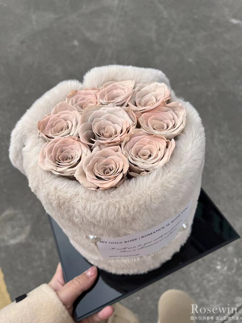 暖冬兔兔抱抱桶永生花(卡布漸變)