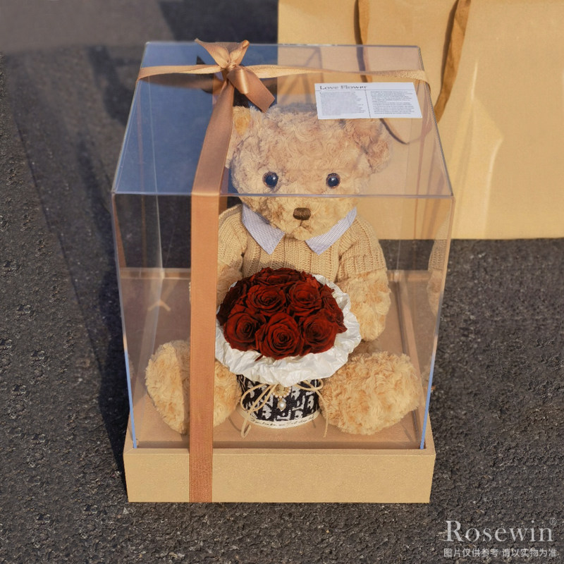 泰迪熊主題紅玫瑰永生花禮盒裝