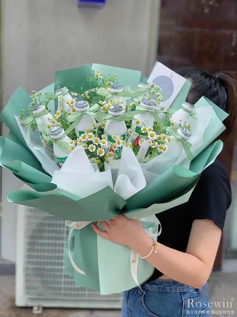 10瓶哇哈哈飲料,適量洋甘菊裝飾