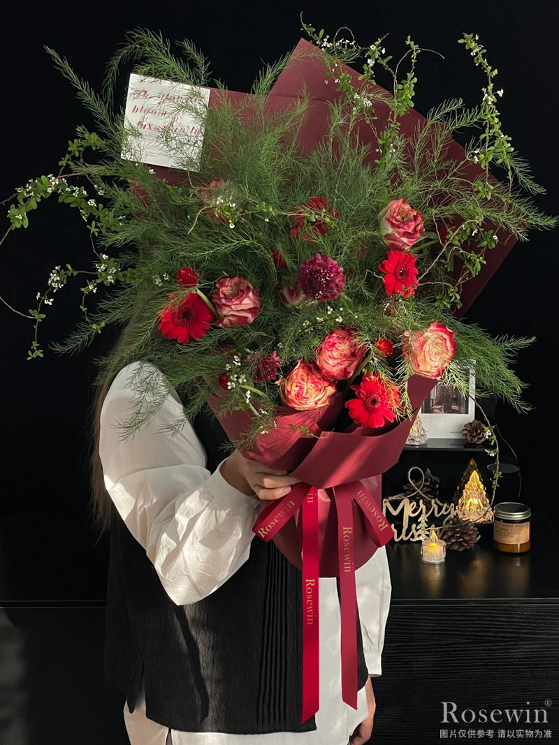 由于各地的花藝師不同,鮮花包扎可能在形式和搭配上與圖片不完全一致,但保證主花材的新鮮程度、數(shù)量、顏色與說明一致,謝謝您的理解。