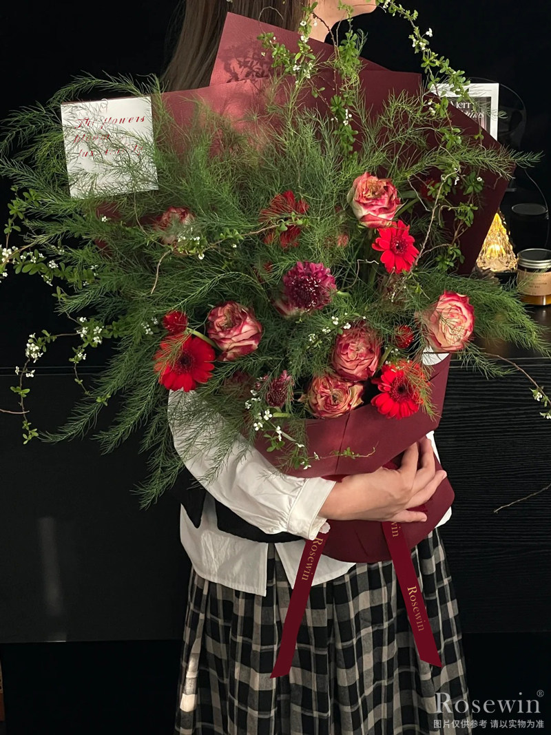 玫瑰、扶郎花、菊花、雪柳、剛草等裝飾(由于鮮花具有季節(jié)性,若無圖上款式將用類似款代替,介意者慎拍)