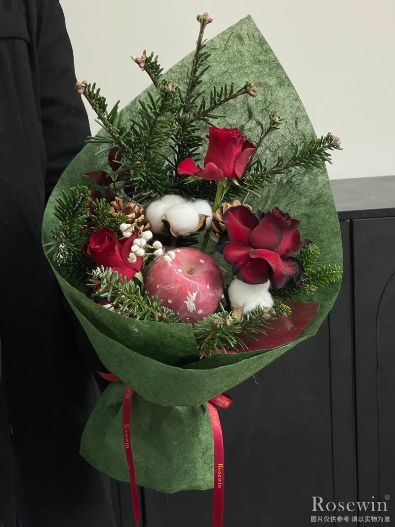 紅蘋果,紅玫瑰,松果等裝飾