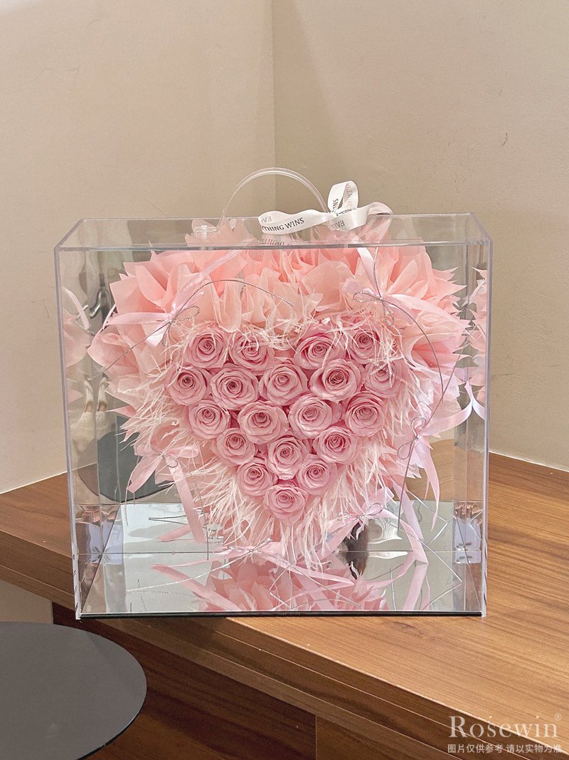 手提愛(ài)心永生花禮盒裝(粉玫瑰)