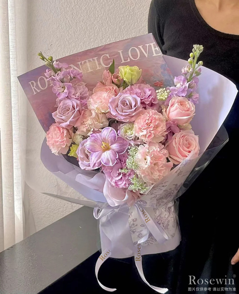 由于各地的花藝師不同,鮮花包扎可能在形式和搭配上與圖片不完全一致,但保證主花材的新鮮程度、數(shù)量、顏色與說明一致,謝謝您的理解。